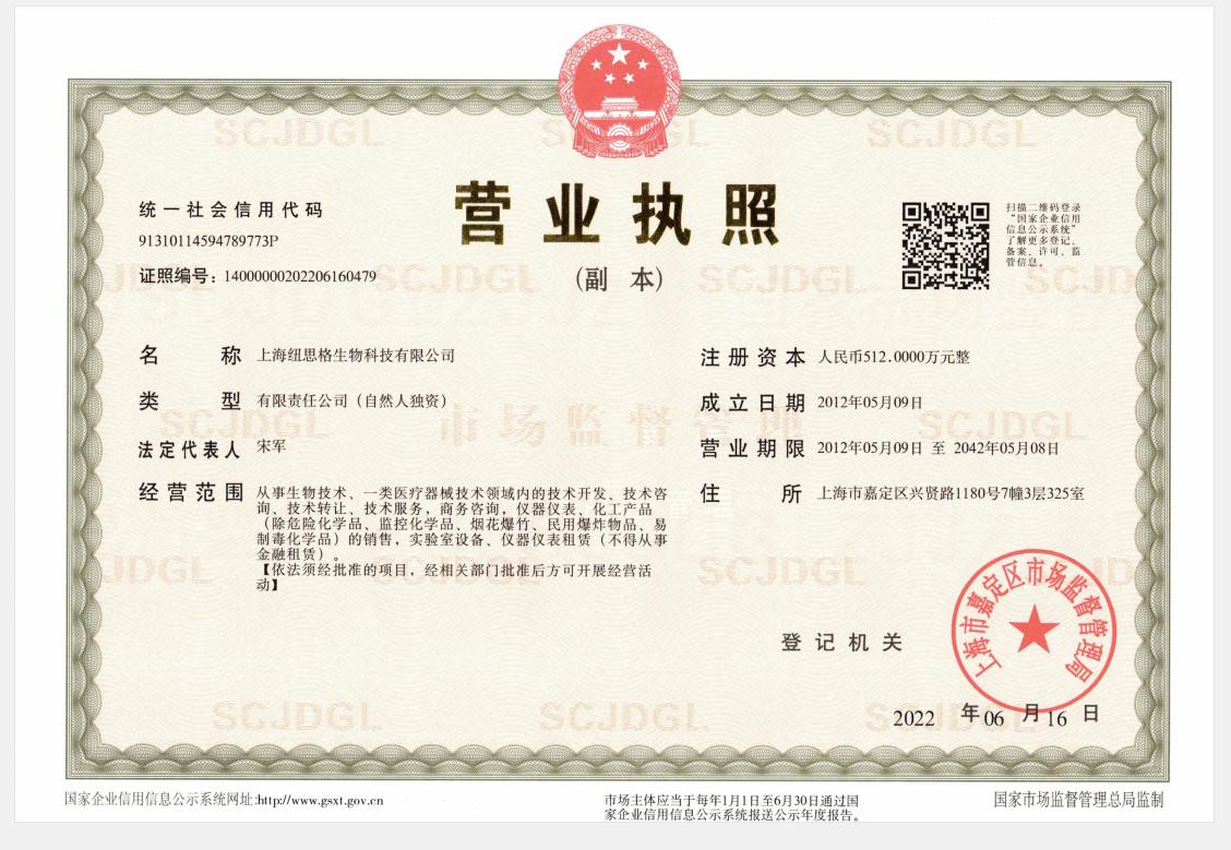 上海紐思格生物醫(yī)學(xué)科技有限公司 版權(quán)所有 免責(zé)聲明 滬ICP備2020037544號(hào)-1 營業(yè)執(zhí)照